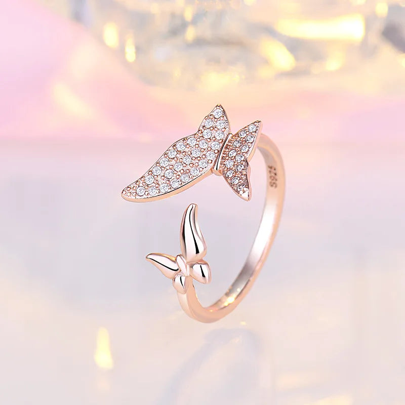 Luckacco 925 Sterling Silver Zircon Butterfly Ring For Women Rings Wedding Fine Jewelry Accessories 2025 Trendy Party Gifts